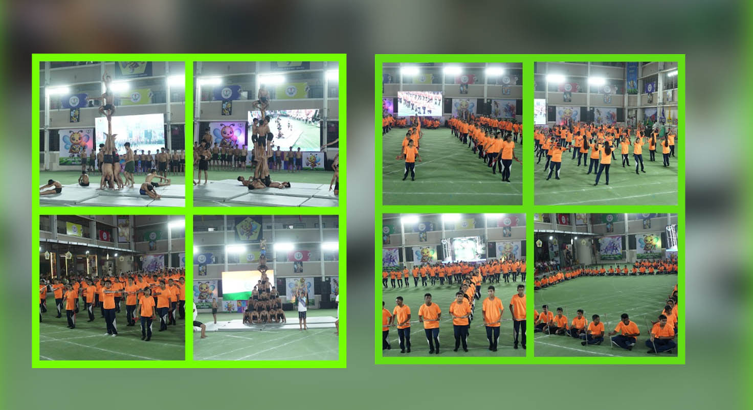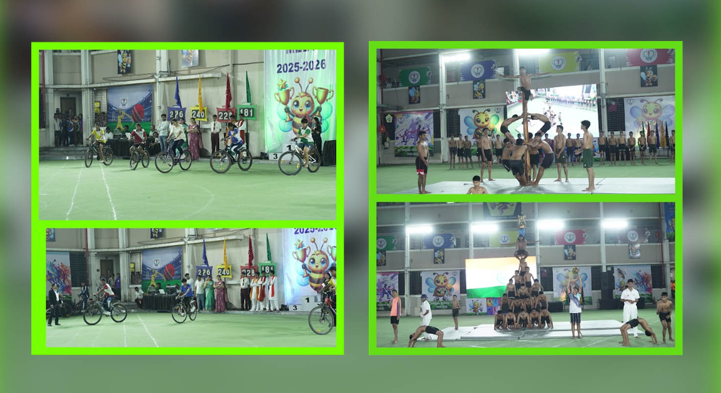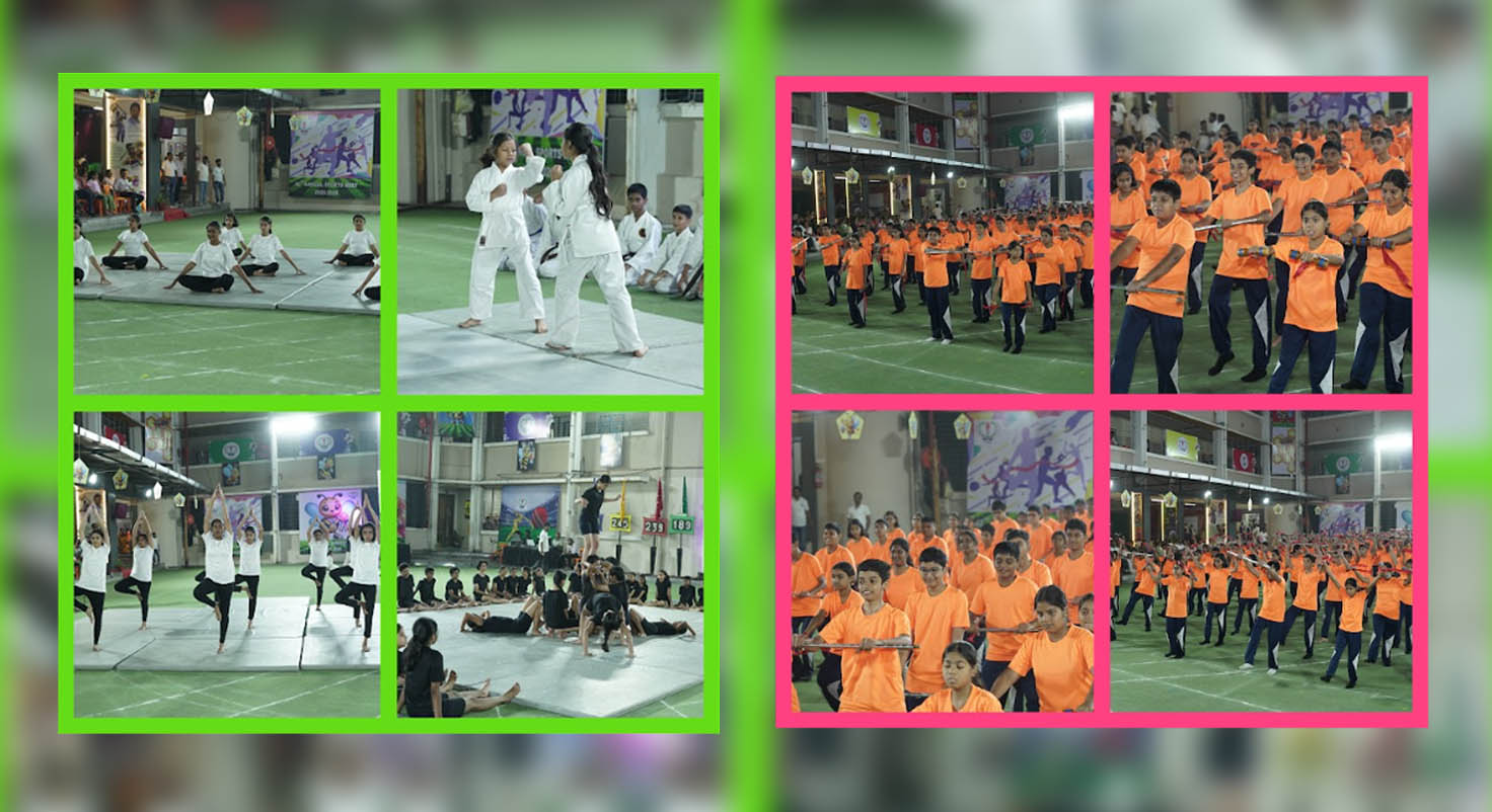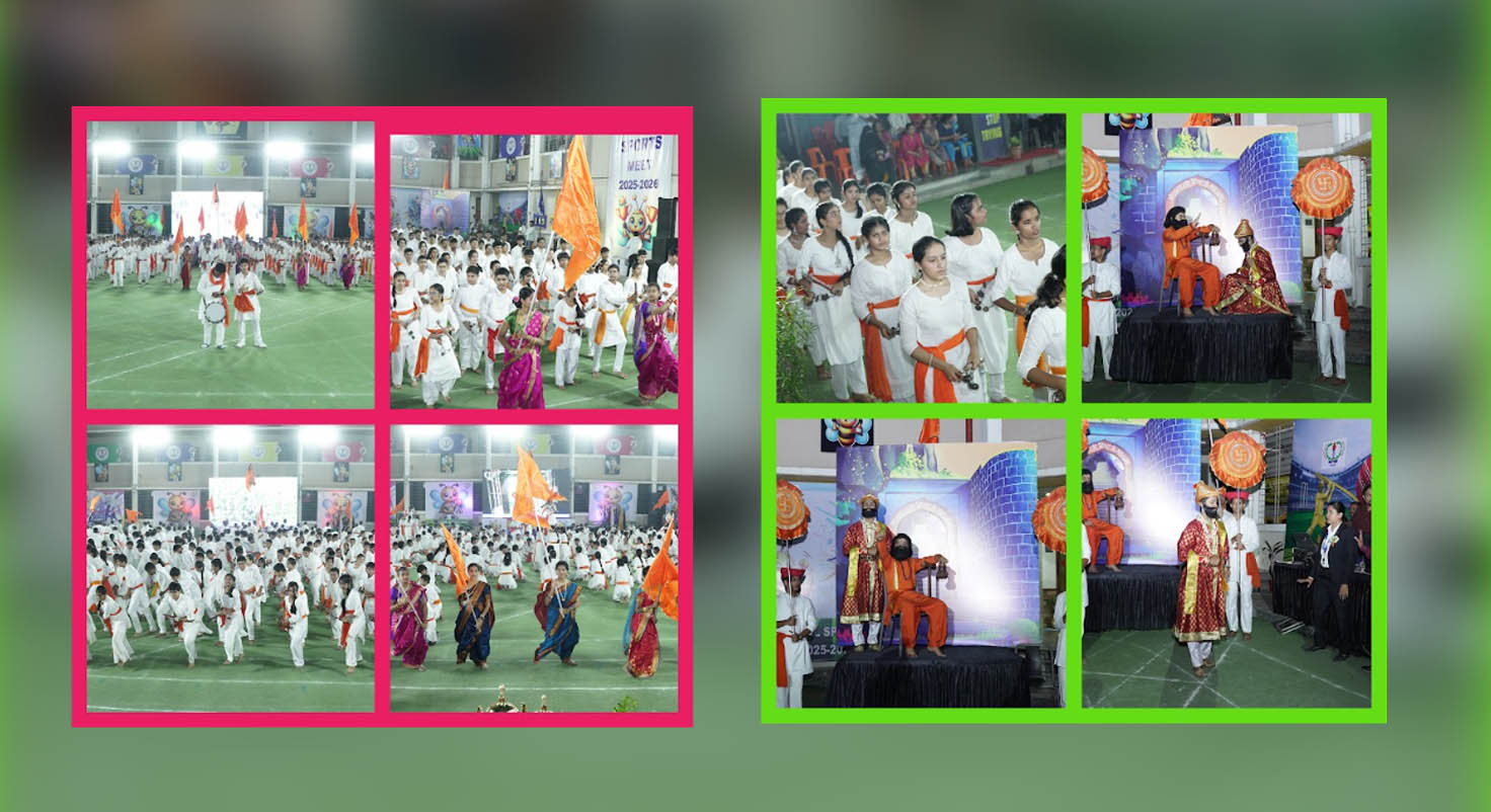 A vibrant series of displays by students of Std. VI, VII, and VIII added colour, energy, and elegance to the event. The Yoga, Martial Arts, Gymnastics, and Mallakhamb presentations showcased remarkable strength, agility, and discipline, truly captivating the audience. The Aerobics routines and pyramid formations further highlighted the students’ exceptional coordination, balance, and teamwork. The crown jewel of the evening was the Lezim display, which artistically illustrated Shivaji Maharaj’s dream of Swaraj, filling the arena with pride and passion. The Tug of War, Relay, and Slow Cycling events added excitement and energy to the day, keeping both participants and spectators on the edge of their seats.