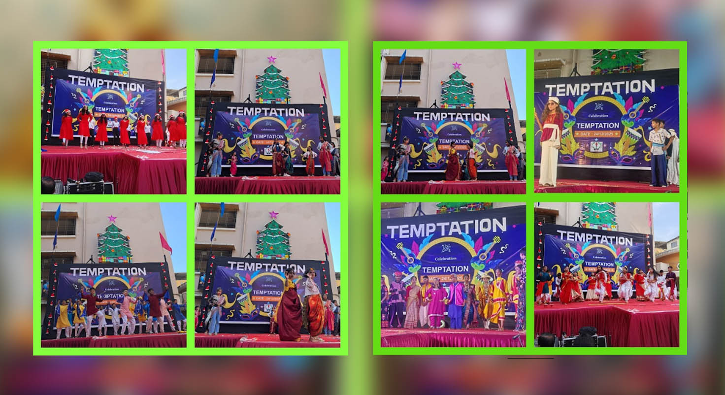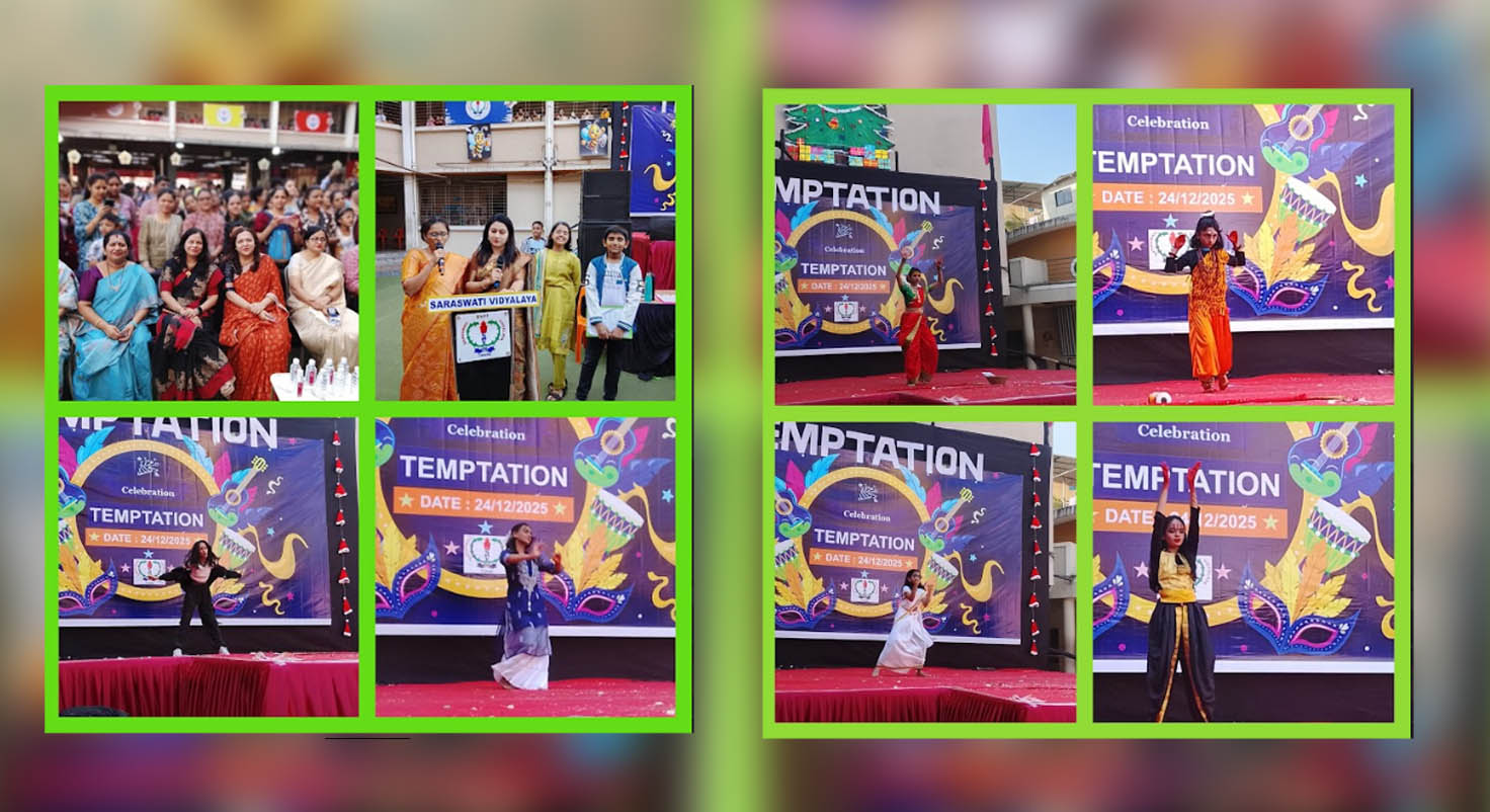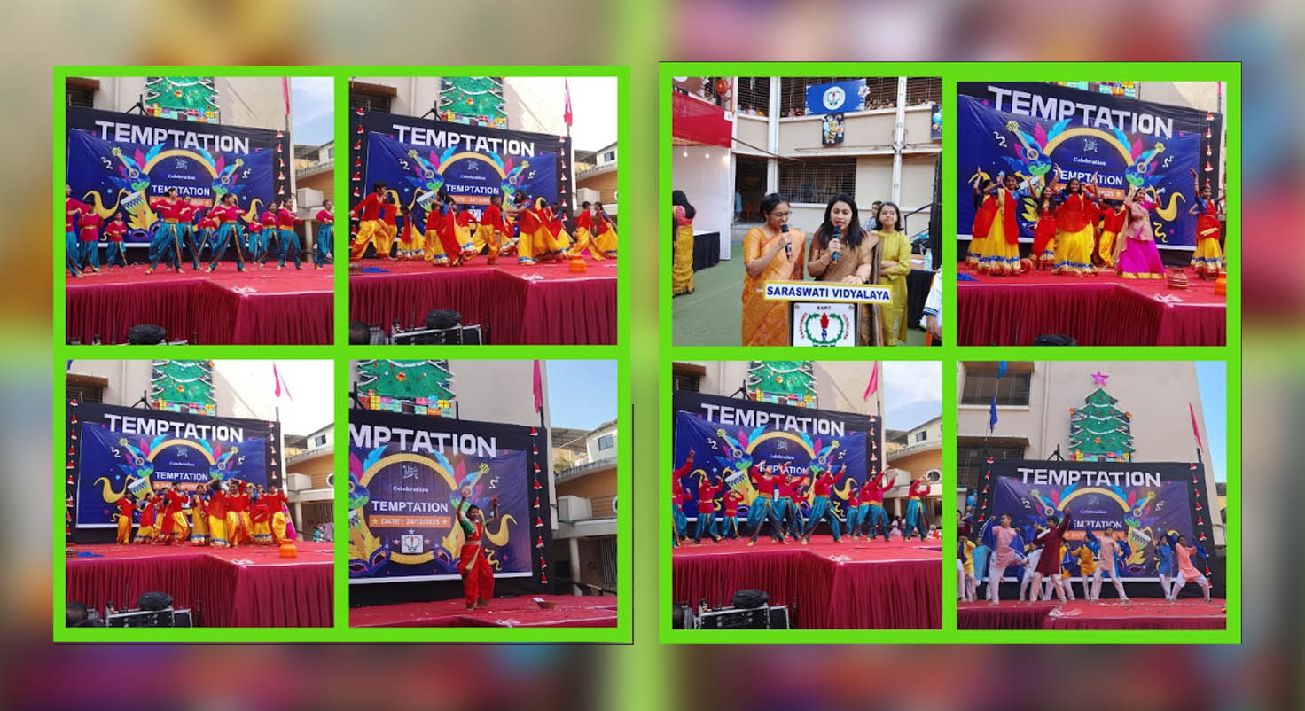 The annual funfair Temptation of Saraswati Vidyalaya, Rabodi, Thane, was held on 24th December 2025 in both morning and evening sessions with the theme Christmas Carnival. The campus buzzed with festive joy as teachers set up creative stalls and food counters offering a variety of treats.