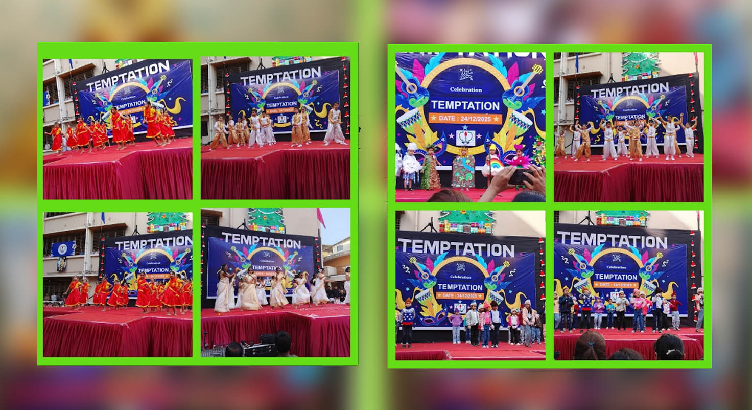 The event featured fancy dress , dance performances and competitions, with the parent–child duo dance being a special attraction. The evening session showcased cartoon-themed fancy dress, solo performances, Ganesh Vandana, retro Bollywood themed dance performances, group singing and elegant fashion shows by students of Grades 8 and 11 followed by a melodious Orchestra performance by the students of grade IX and XI.The celebration concluded with the announcement of lucky draw and best stall winners, making Temptation 2025 a memorable festive experience for all.