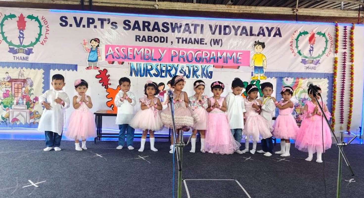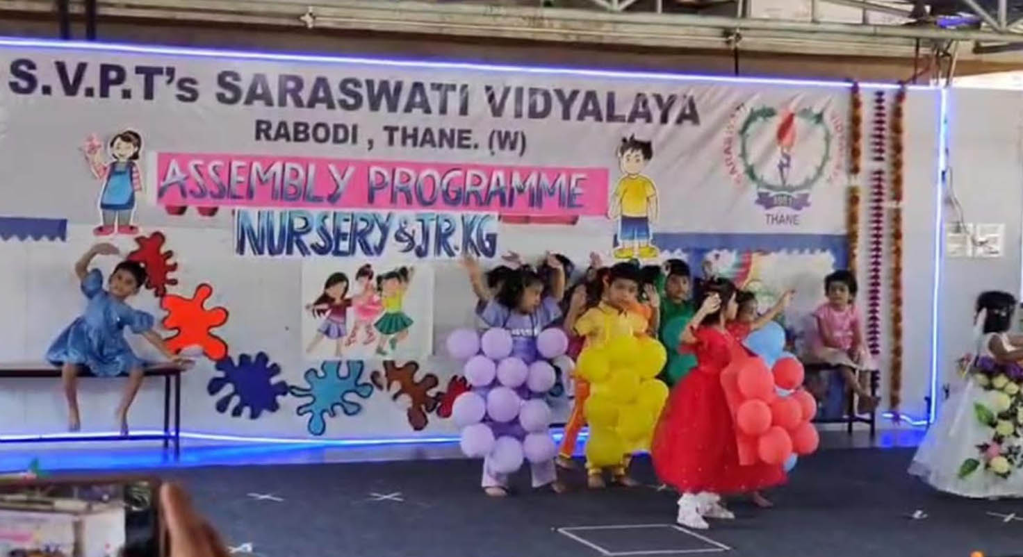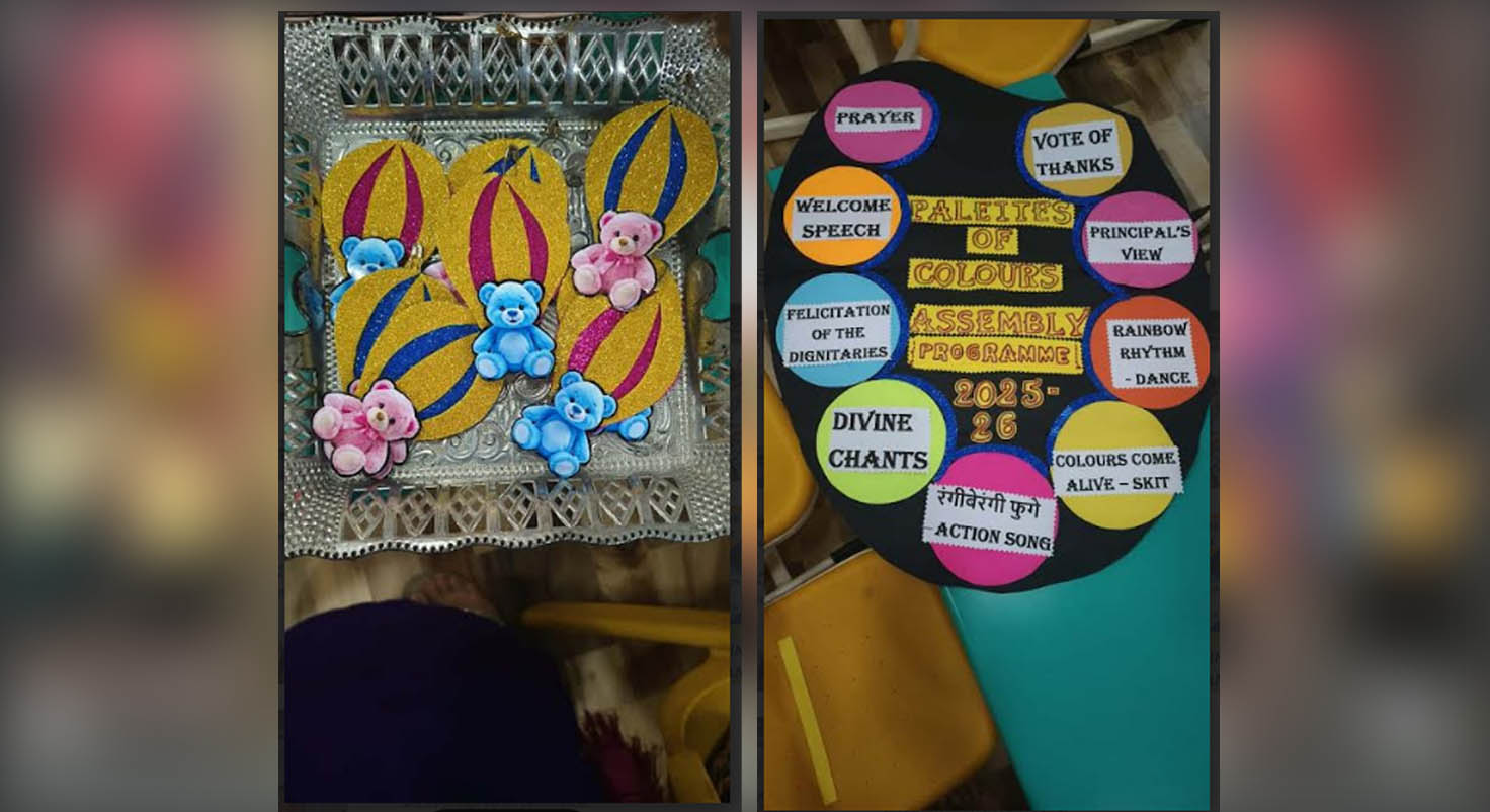 The Nursery and Jr. KG students presented their Assembly Programme “Palettes of Colours”, celebrating unity and joy through vibrant performances. The event began with a warm welcome, prayer, and soothing shloka chants by the Nursery children, followed by an action song and a delightful skit conveying the moral value that - like colours blend to form new shades, we too must blend with love and harmony.