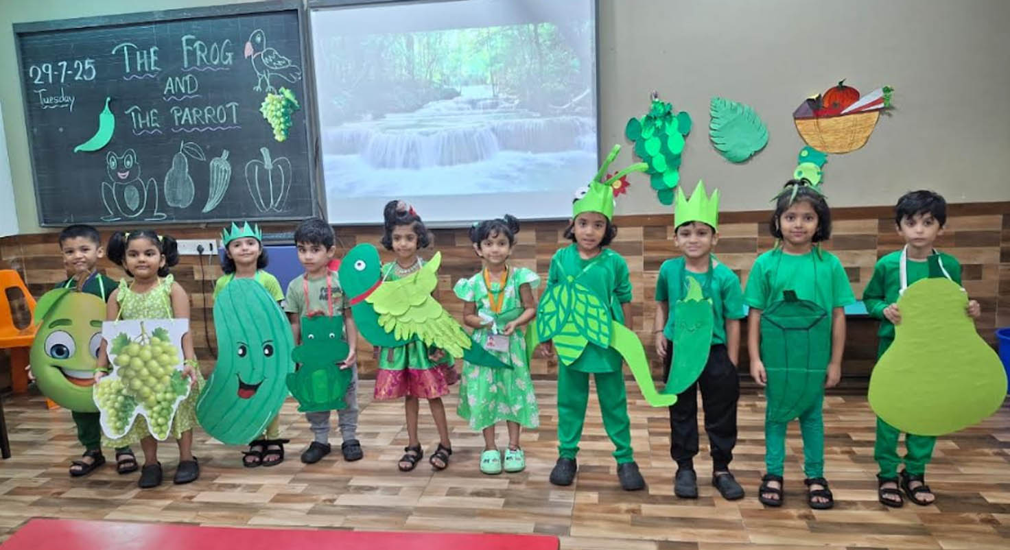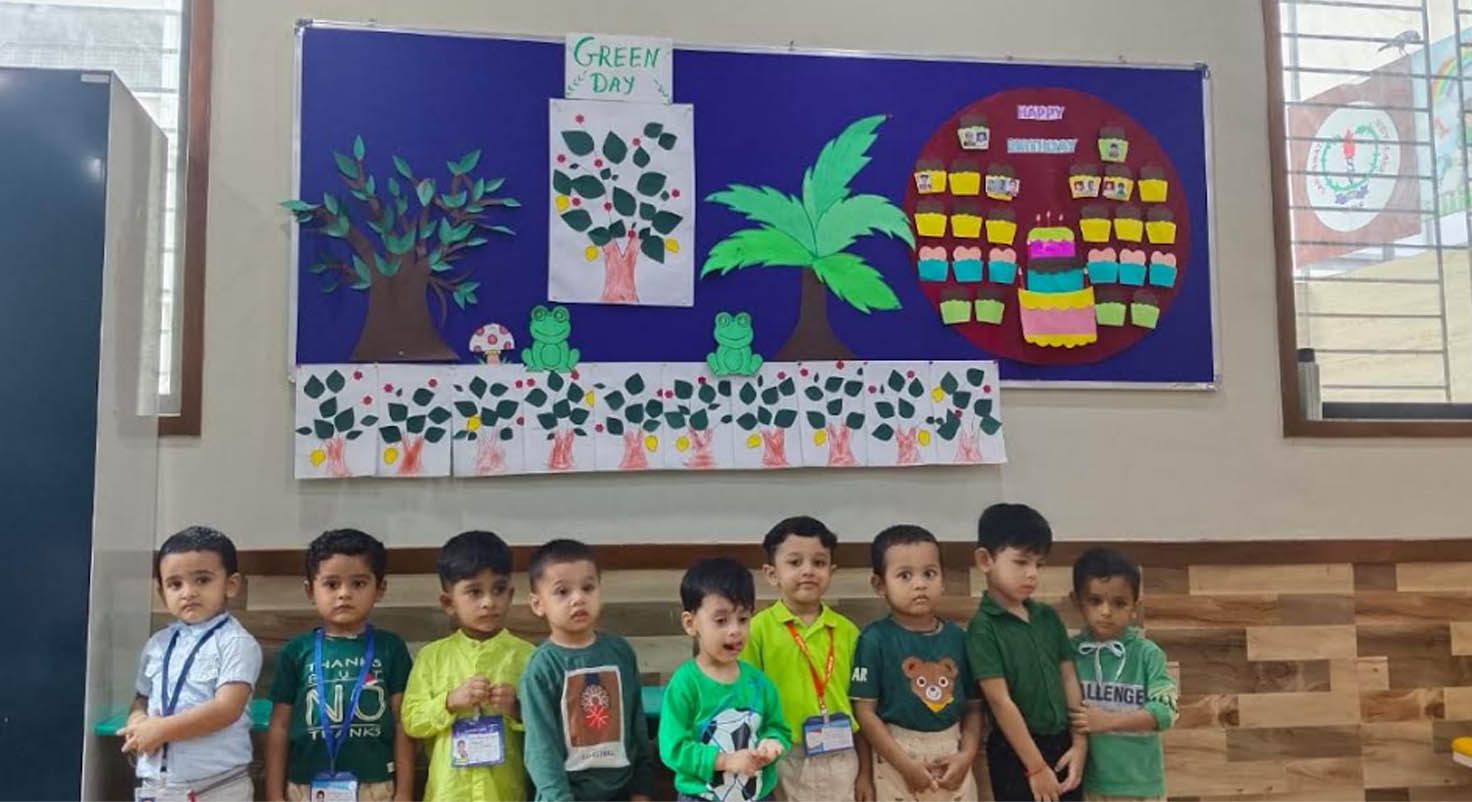 Dressed in beautiful shades of green, the children enjoyed fun-filled activities like a nature walk and storytelling emphasising on the colour green. Their joy knew no bounds as they learned about the importance of greenery and tree plantation. Adding to the charm, the day also featured a green-coloured food item in their tiffins, which all the children relished with delight.
