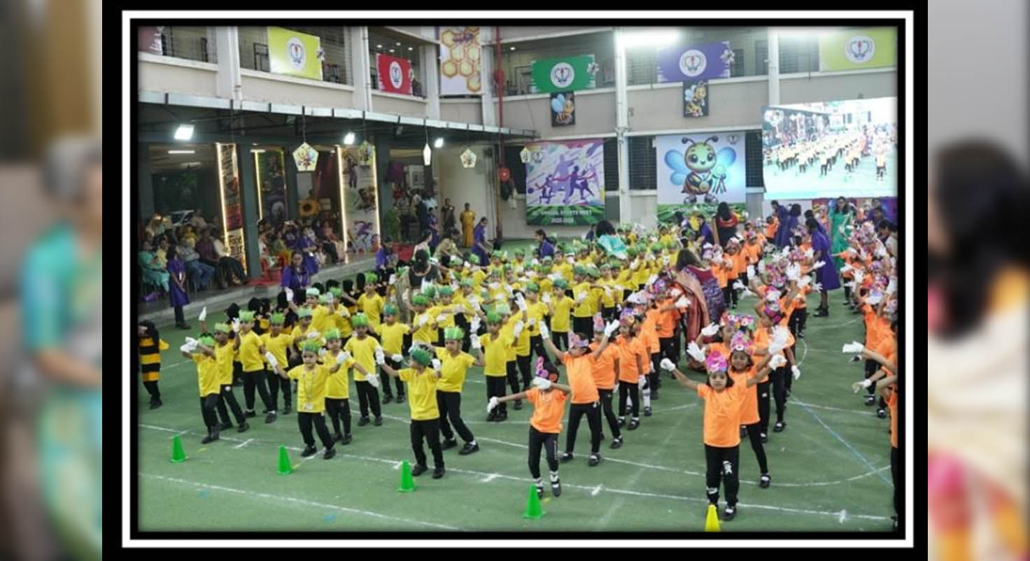 A vibrant march-past by students into their respective houses marched proudly, reflecting discipline, teamwork, and pride. The school band added energy to the parade with their lively music. The Chief Guest of the day Mr. Preet Surve inaugurated the event by releasing colourful balloons and the mascot—a cheerful Honey Bee, symbolizing strength, hard work, and determination.